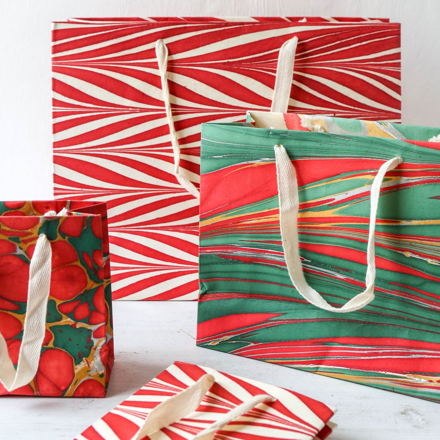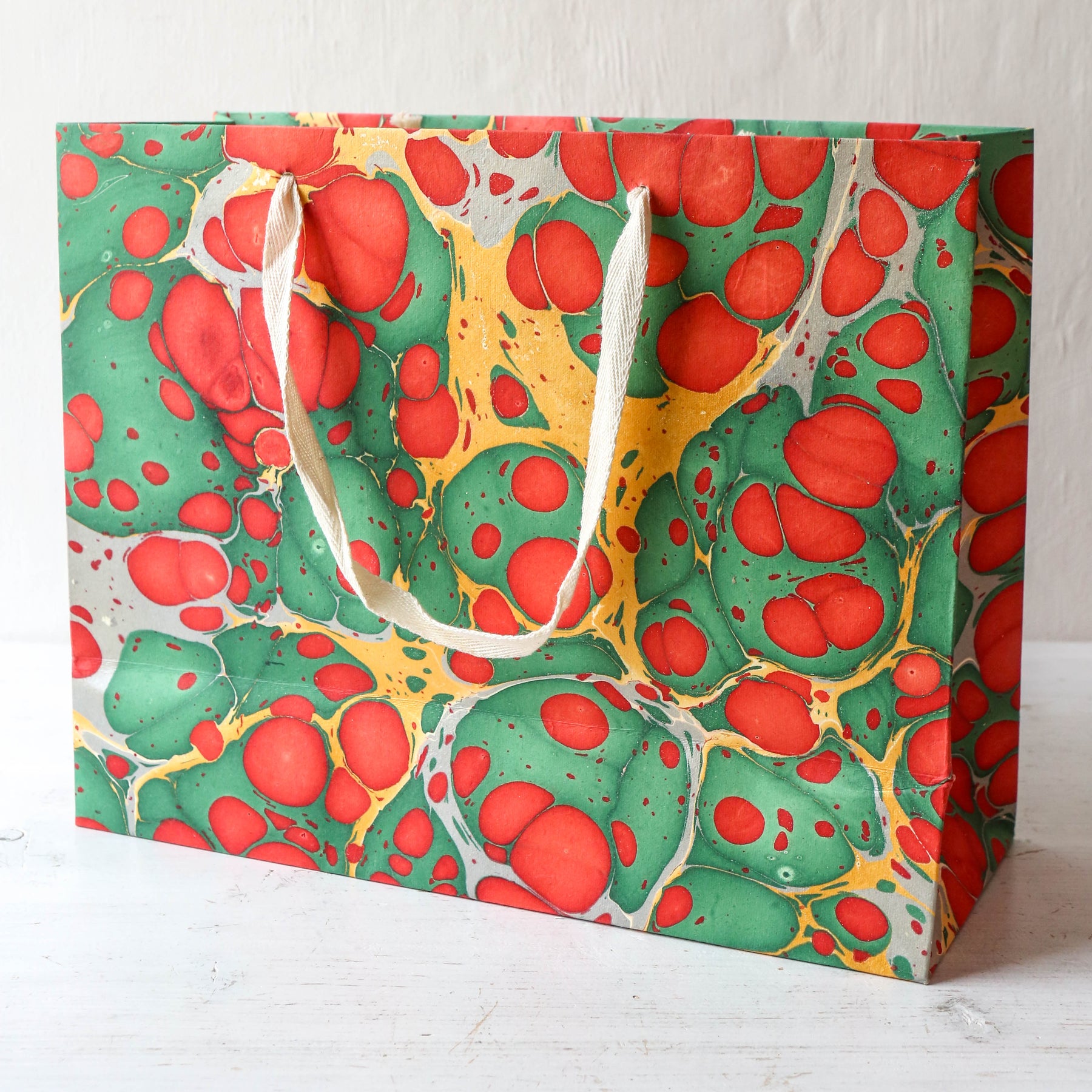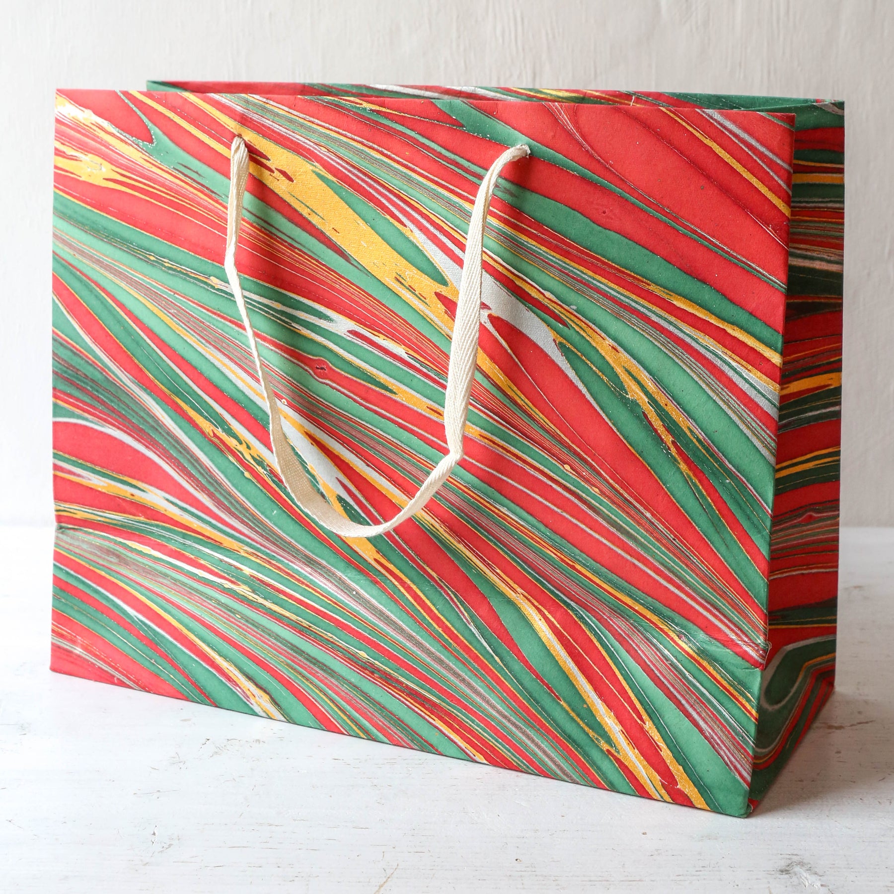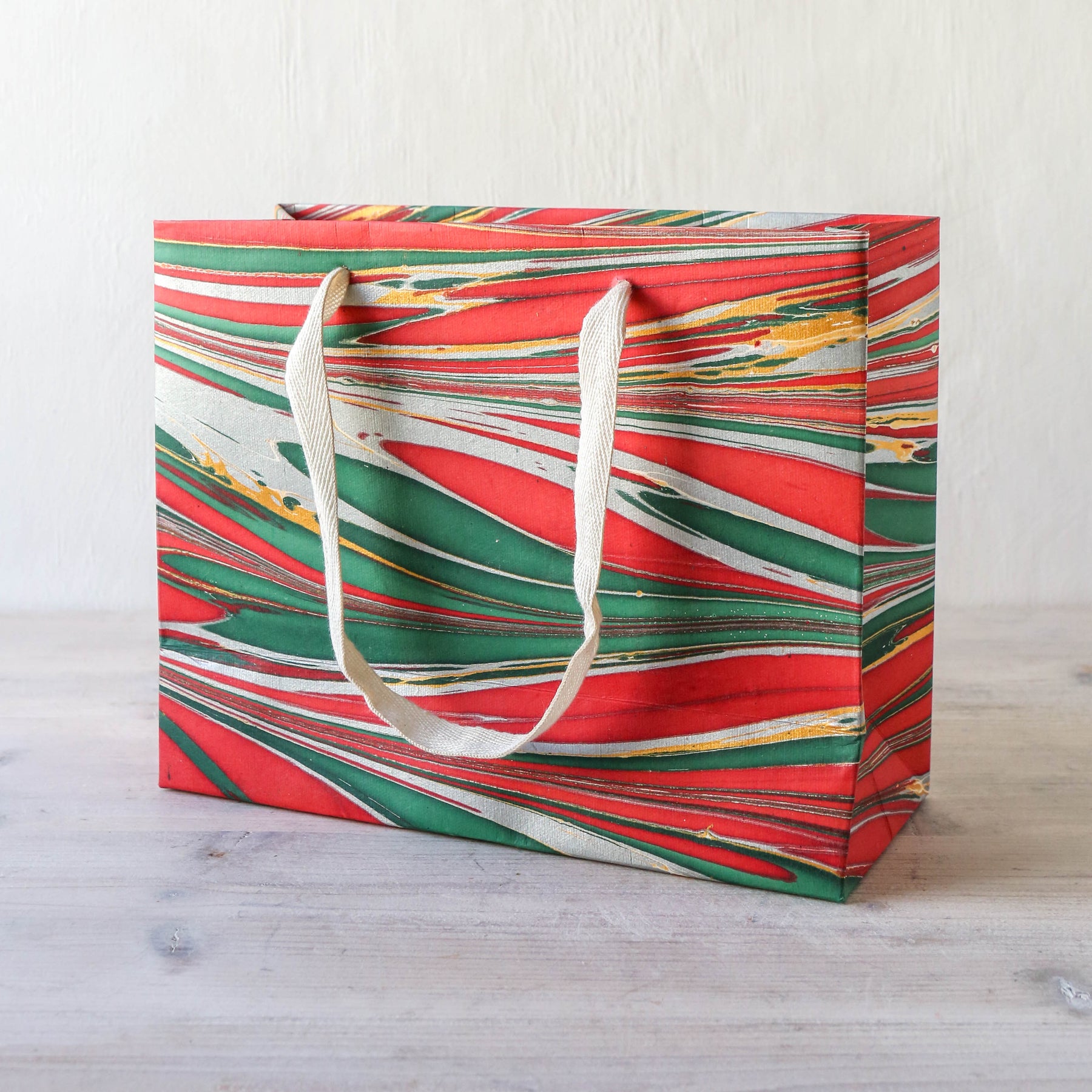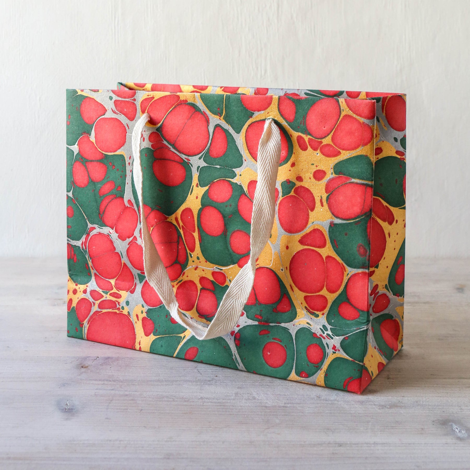 Festive Hand Marbled Paper Gift Bag