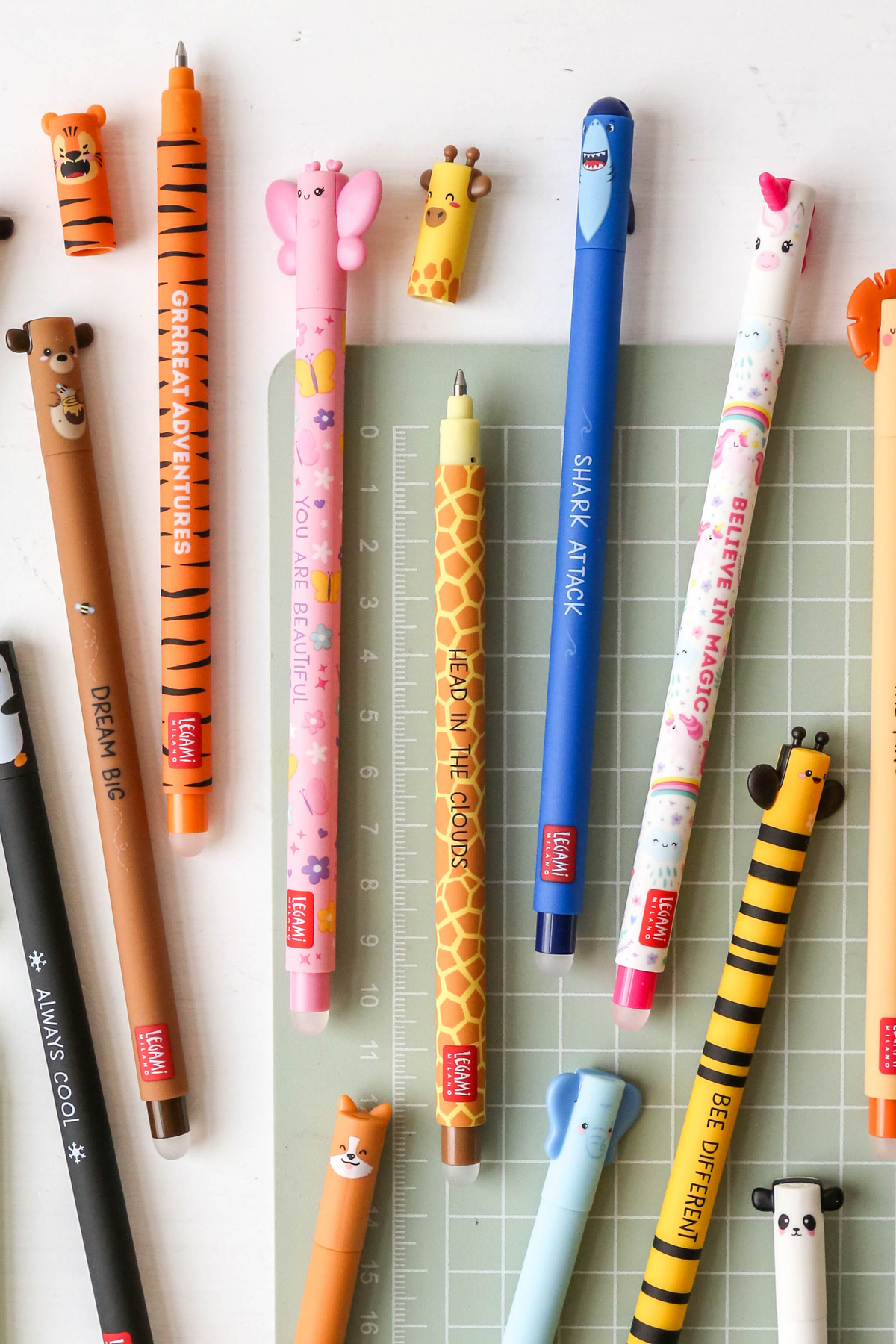 Erasable gel pens from Legami. With a wide range of animals to choose from, each with their own small message and ink colour; there's a pen for everyone young and old!