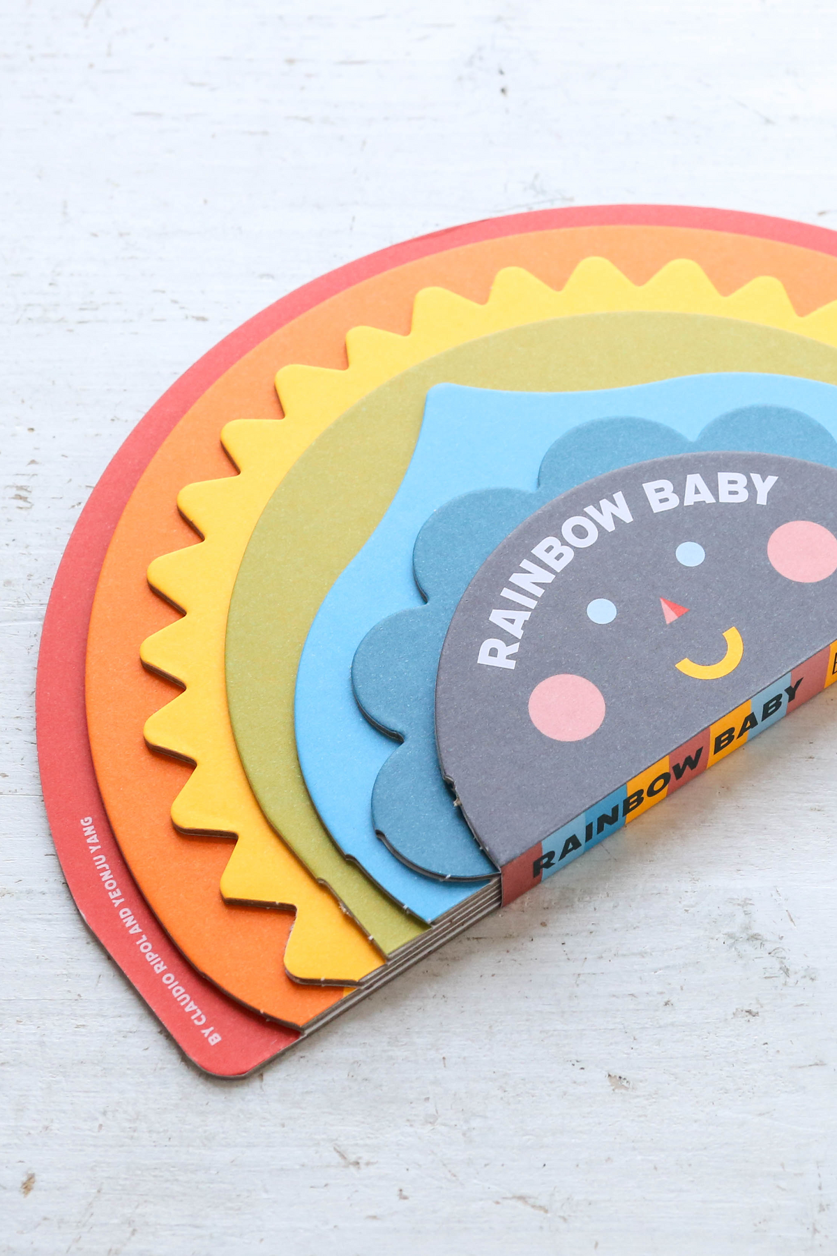 The appearing and disappearing faces throughout the book's pages are a nod to peek-a-boo games and will encourage toddlers to be involved and interested. When closed shut, the book's pages come together to form a giant rainbow, meaning that the book can be displayed frontally as a glorious decoration piece on the shelf.