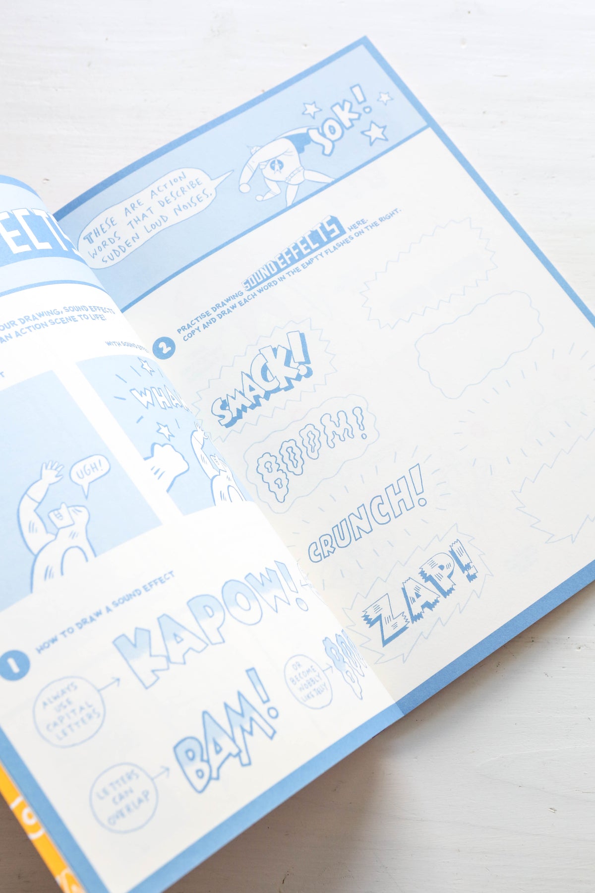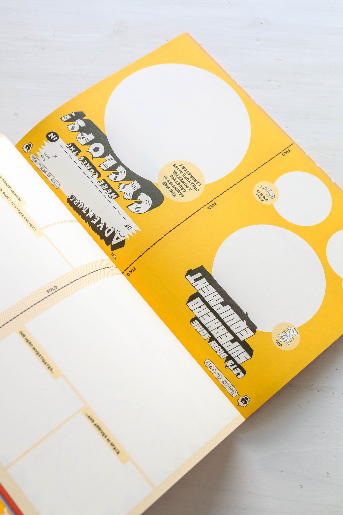 The book contains 10 exciting 8-page comics to draw, colour and complete. Each adventure has super story prompts to start you off – and the rest is up to you! You can even pull them out, put them together and give them to your friends to read.