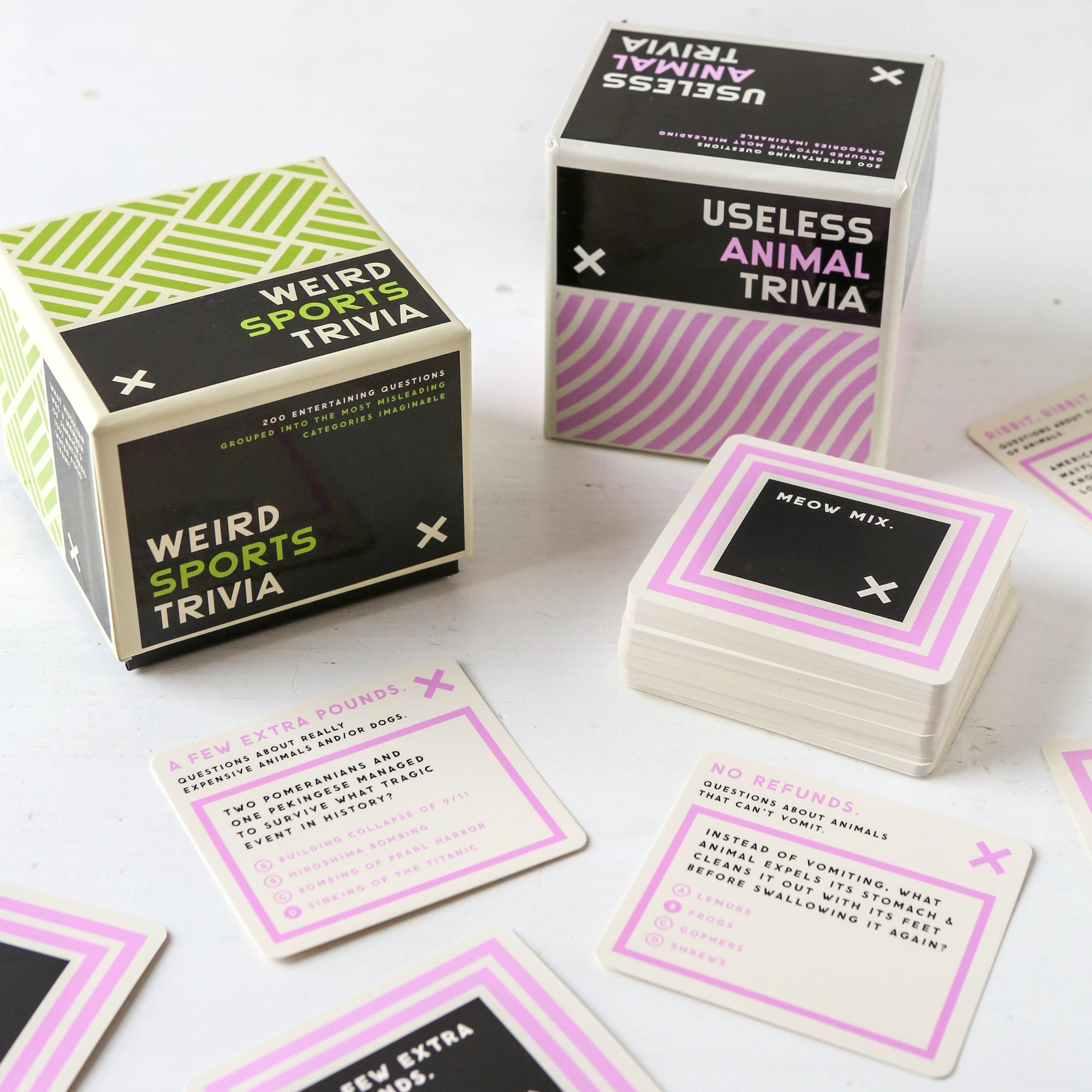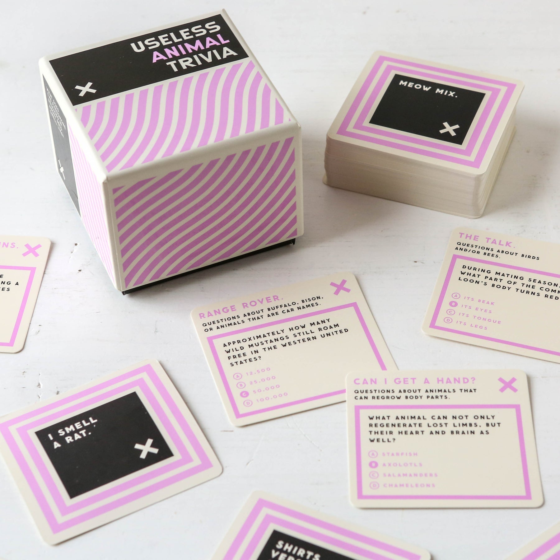Trivia should be fun–not feel like a homework assignment. That’s why we’ve filled ours with as many weird and obscure animal facts as we could find…and even better, you’ll choose questions from a bunch of misleading categories. For example: “I Smell A Rat”–which are questions about animal odors. Includes 200 unique trivia cards specifically themed around animals.